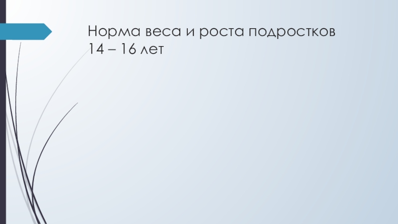 Слайд 13Норма веса и роста подростков 14 – 16 лет