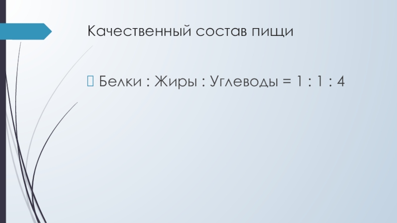 Качественный состав пищиБелки : Жиры : Углеводы = 1 : 1 : 4
