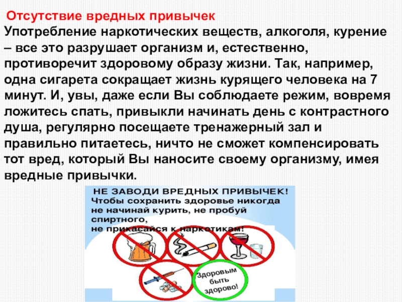 Слайд 13 Отсутствие вредных привычек