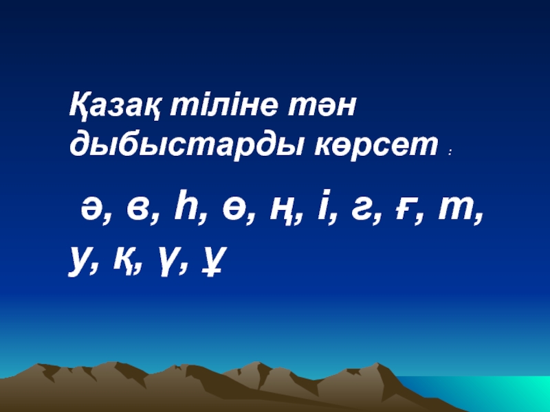 Слайд 30Қазақ тіліне тән дыбыстарды көрсет :