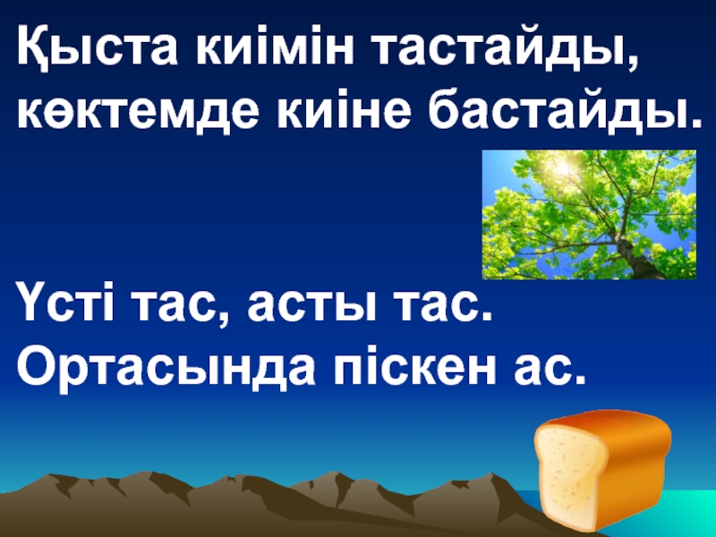 Слайд 40Қыста киімін тастайды, көктемде киіне бастайды.