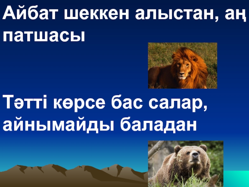 Слайд 44Айбат шеккен алыстан, аң патшасы