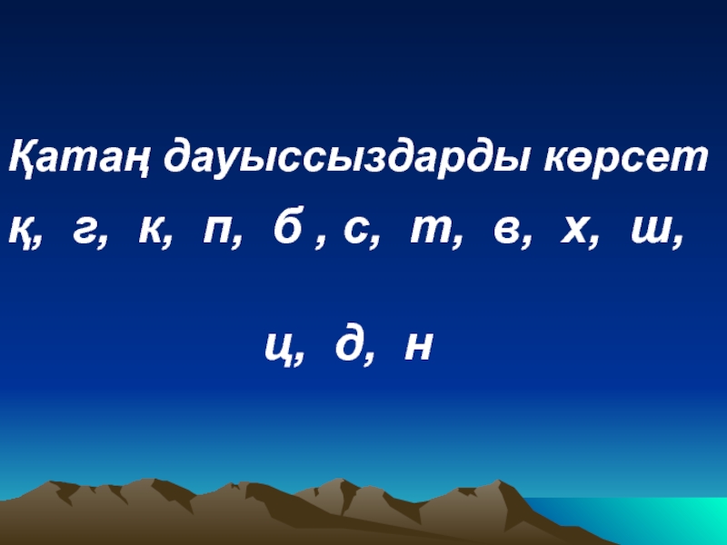 Қатаң дауыссыздарды көрсетқ, г, к, п, б , с, т, в, х, ш,