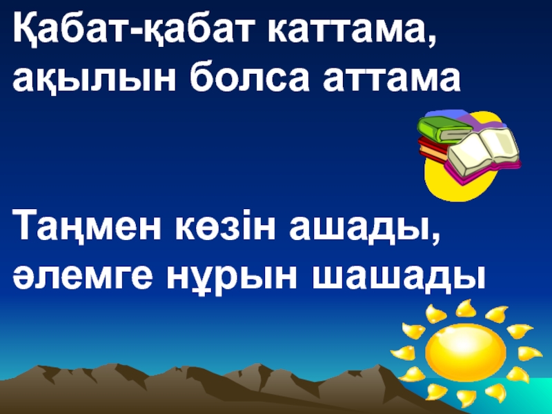 Қабат-қабат каттама, ақылын болса аттама Таңмен көзін ашады, әлемге нұрын шашады