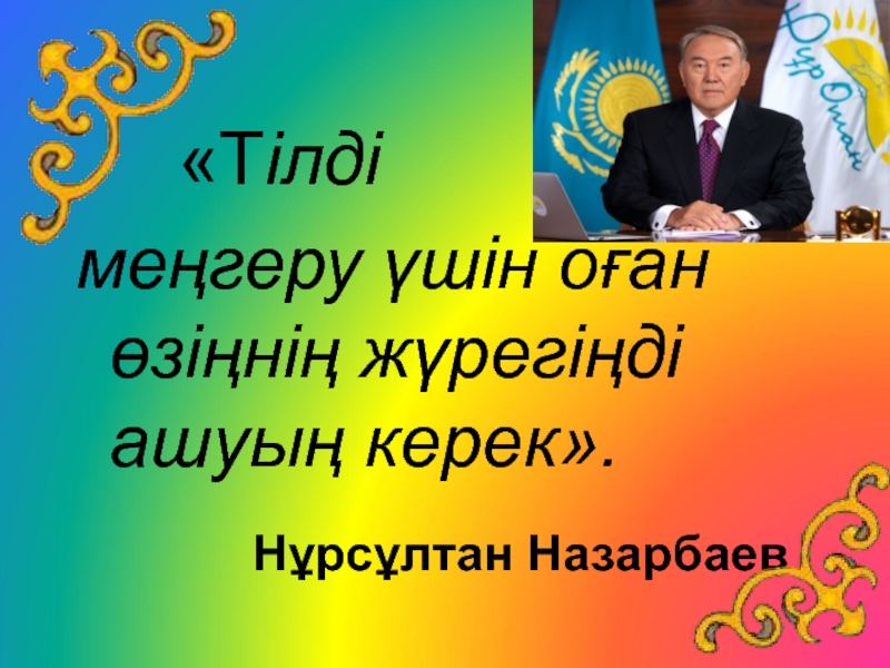 «Тілді меңгеру үшін оған өзіңнің жүрегіңді ашуың керек».     Нұрсұлтан Назарбаев