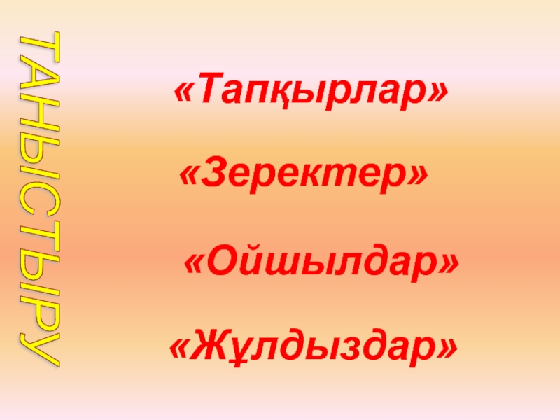 ТАНЫСТЫРУ «Тапқырлар»«Зеректер»«Жұлдыздар» «Ойшылдар»