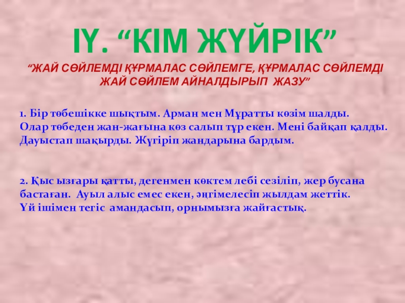 1. Бір төбешікке шықтым. Арман мен Мұратты көзім шалды.