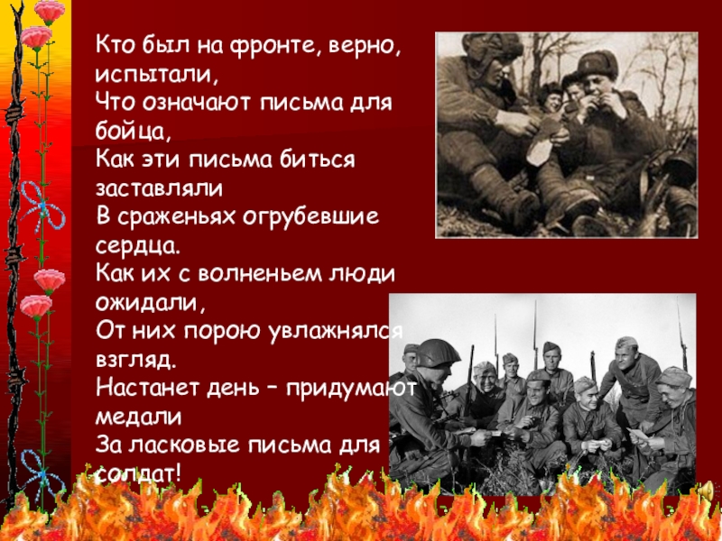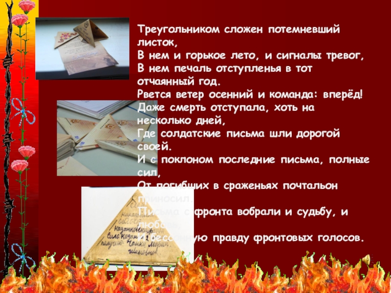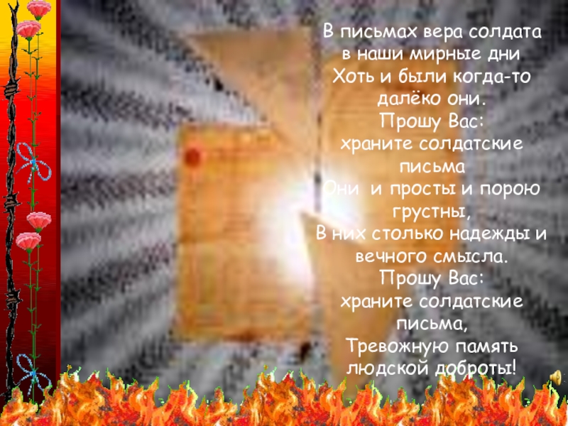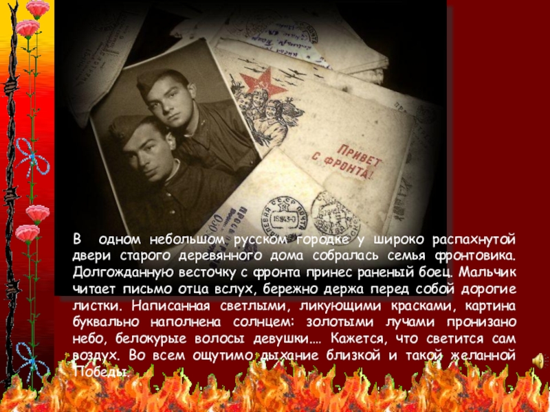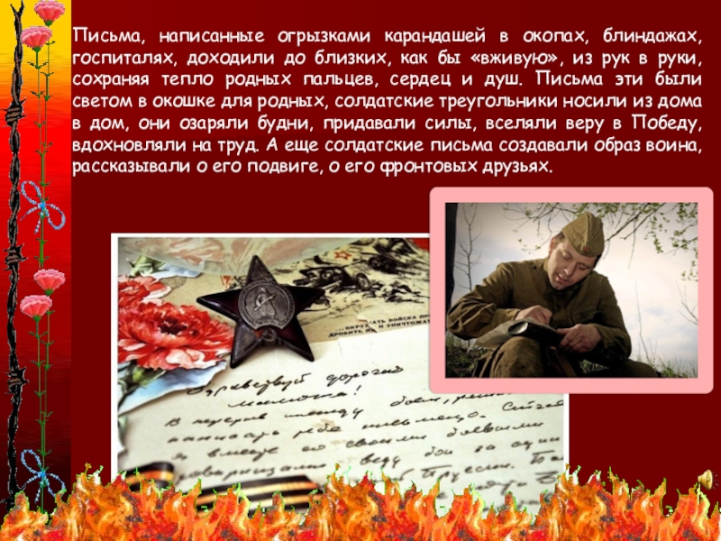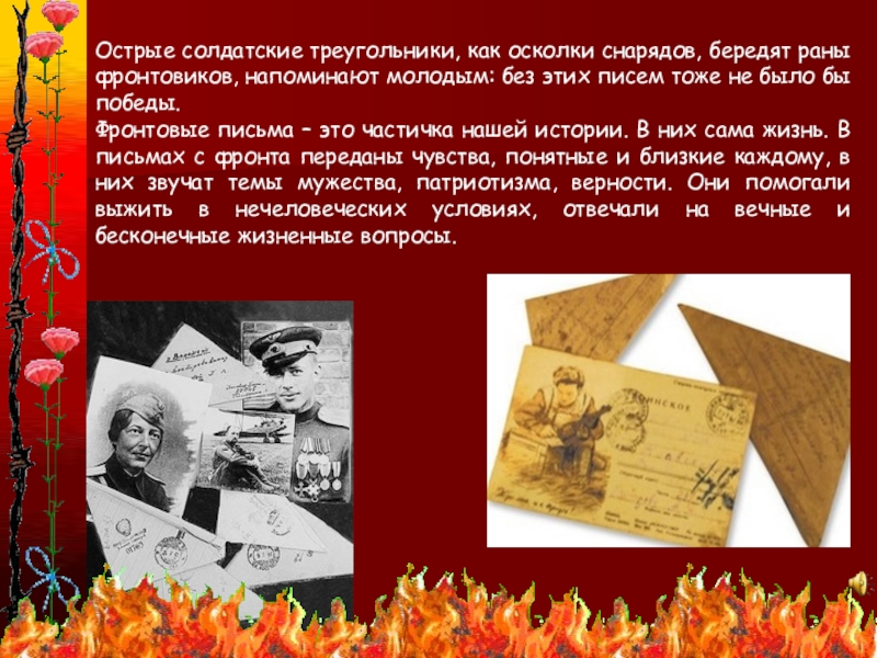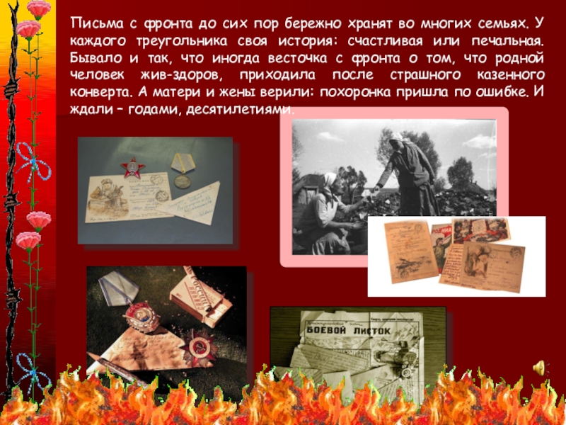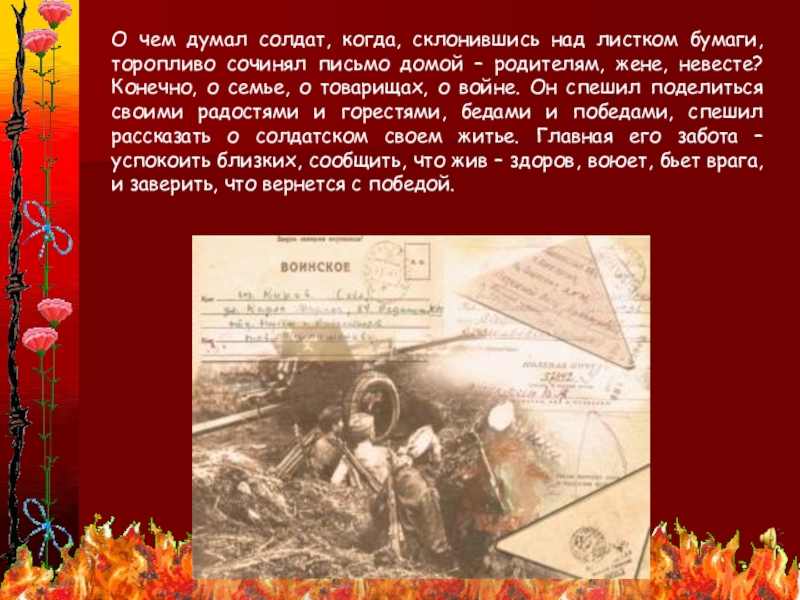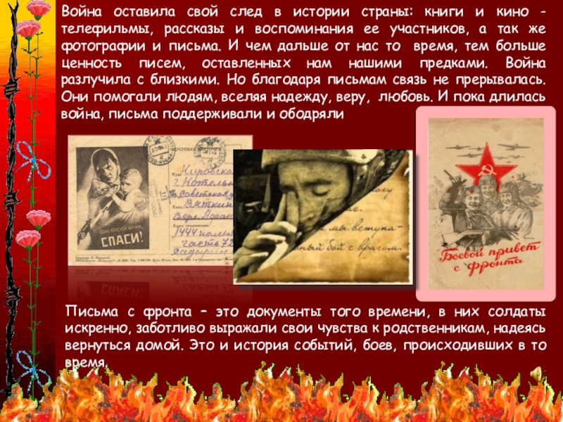 Письма с фронта – это документы того времени, в них солдаты искренно, заботливо выражали свои чувства к родственникам, надеясь вернуться домой. Это и история событий, боев, происходивших в то время.