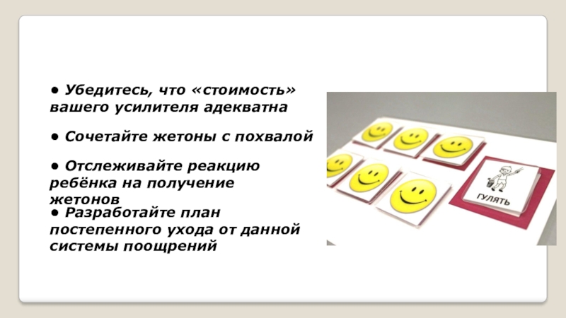 • Отслеживайте реакцию ребёнка на получение жетонов