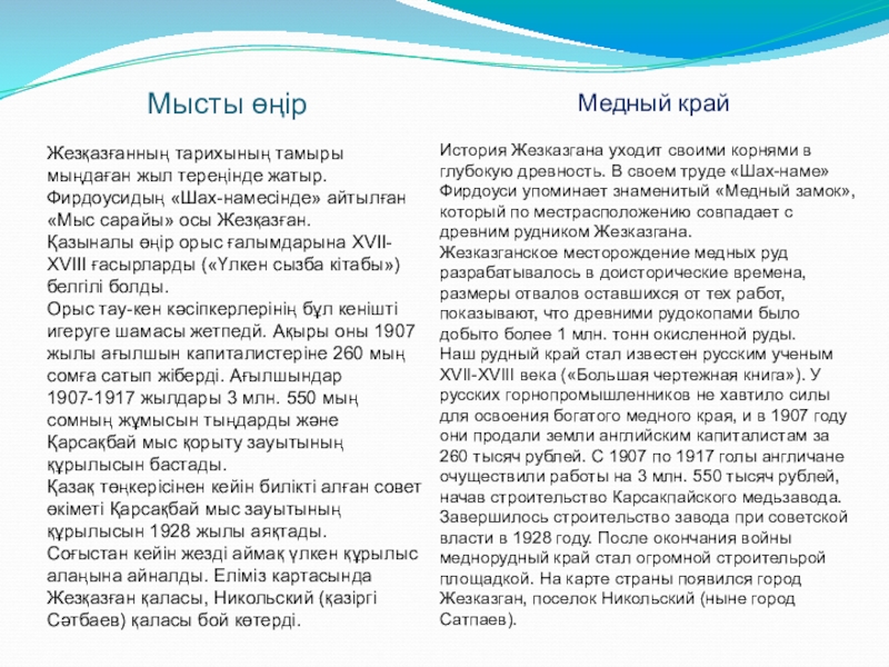 Слайд 1Проект: «Жезказган-медная столица Казахстана».