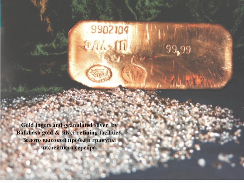 Слайд 14Gold ingots and granulated silver by Balkhash gold & silver refining