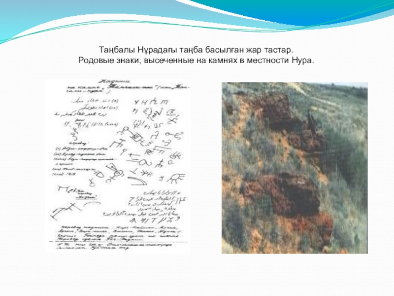 Слайд 24Таңбалы Нұрадағы таңба басылған жар тастар.