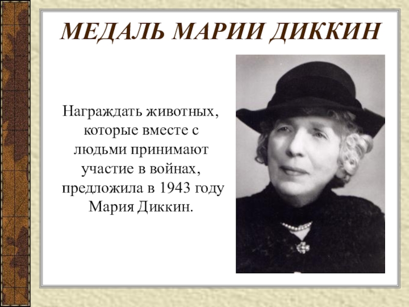 Слайд 19МЕДАЛЬ МАРИИ ДИККИН