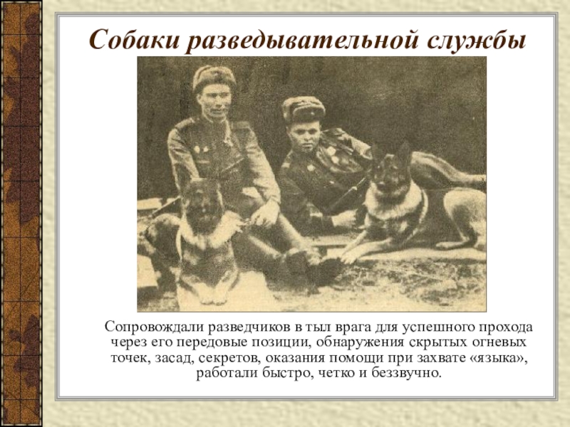 Слайд 11Собаки разведывательной службы