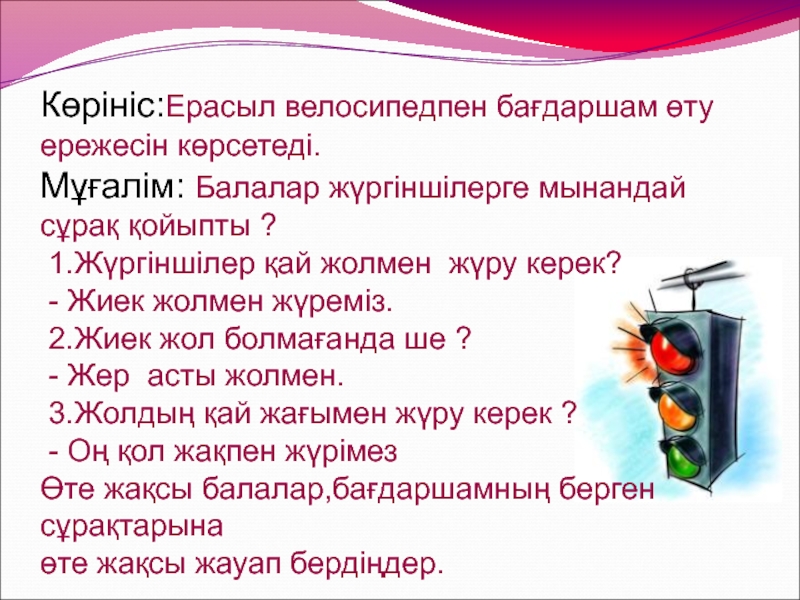 Өте жақсы балалар,бағдаршамның берген сұрақтарына