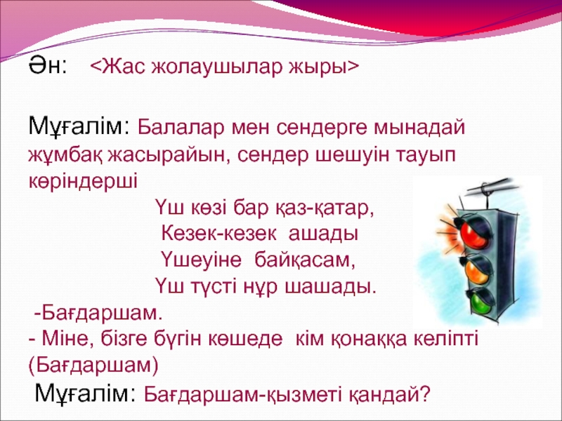 Слайд 14 Ән. Светофор – бағдаршам (Меруерт,Әсел,Жарас)