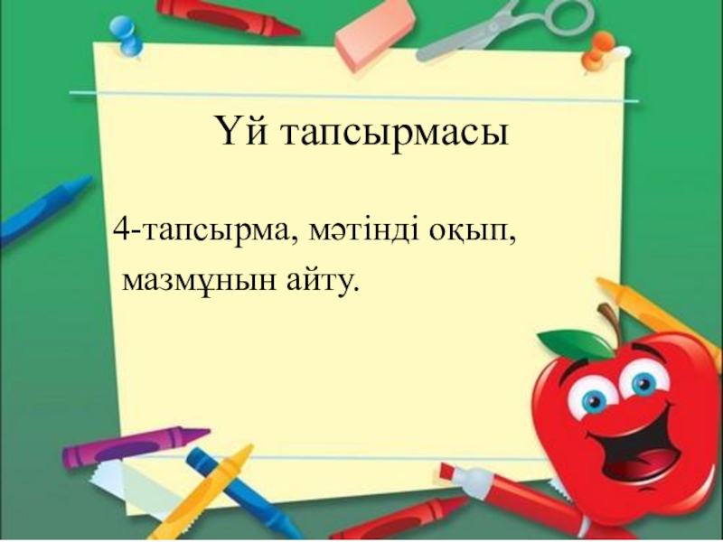 Үй тапсырмасы4-тапсырма, мәтінді оқып, мазмұнын айту.