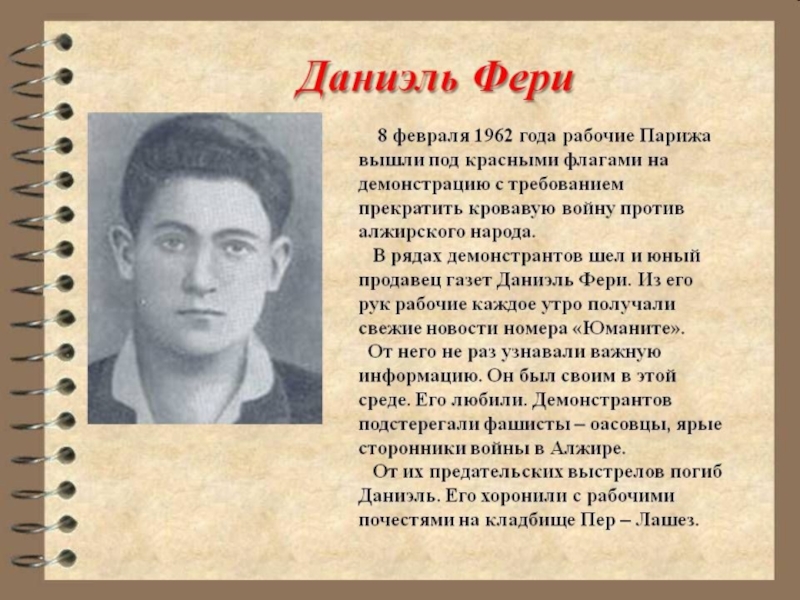 Пятнадцатилетнего Даниэля Фери убили 8 февраля 1962 г.