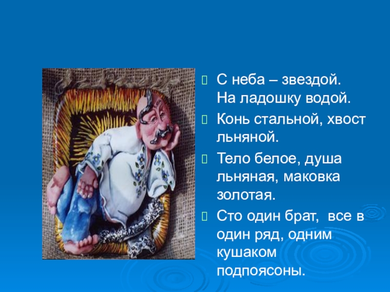 на землю метала. Нам казалось шла с бедой. Оказалась шла с водой. Подошла и пролилась. Пашня вдоволь напилась.