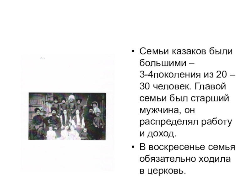 Семьи казаков были большими – 3-4поколения из 20 – 30 человек.