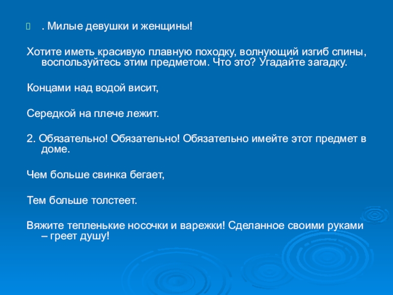 спины, воспользуйтесь этим предметом. Что это? Угадайте загадку.