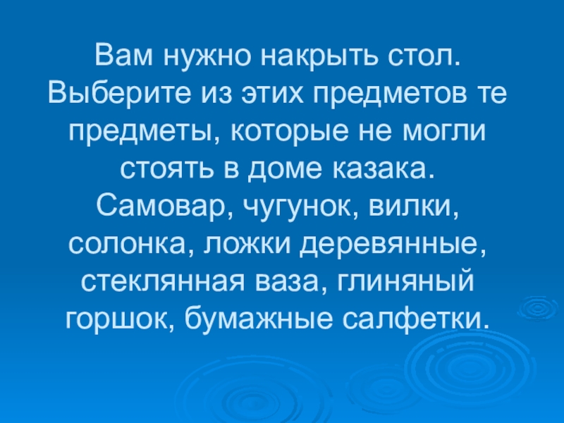 Вам нужно накрыть стол. Выберите из этих предметов те предметы, которые