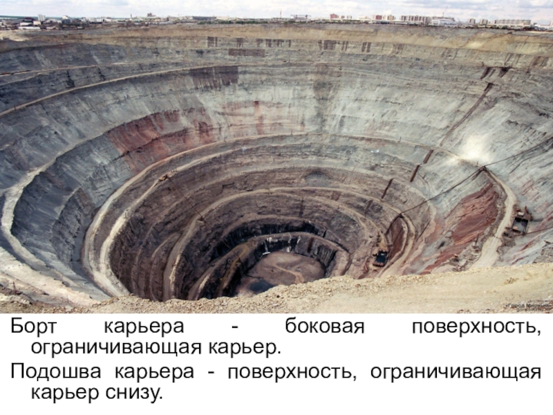 Рабочий борт карьера - борт, на котором сейчас ведутся горные работы. (7)Глубина карьера - среднее расстояние между