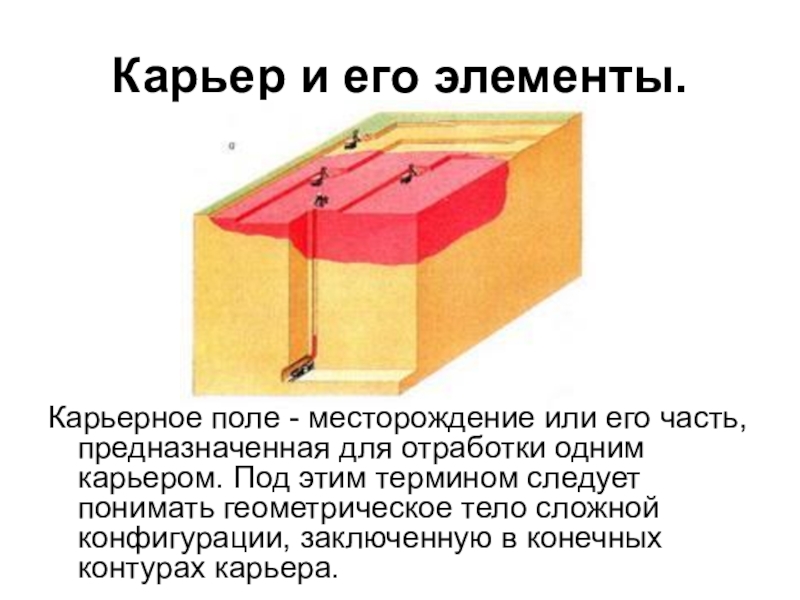 Карьер и его элементы. Карьерное поле - месторождение или его часть, предназначенная для отработки одним карьером. Под
