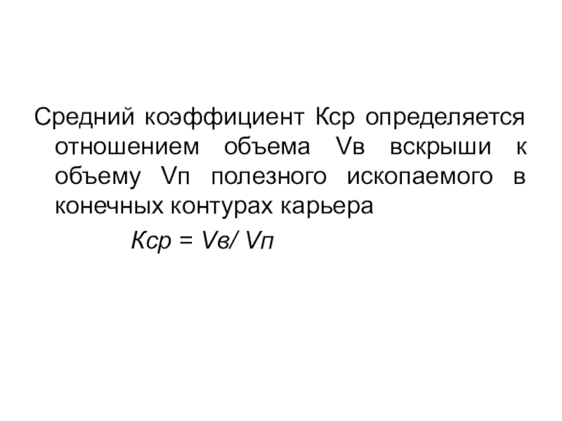 Средний коэффициент Кср определяется отношением объема Vв вскрыши к объему Vп