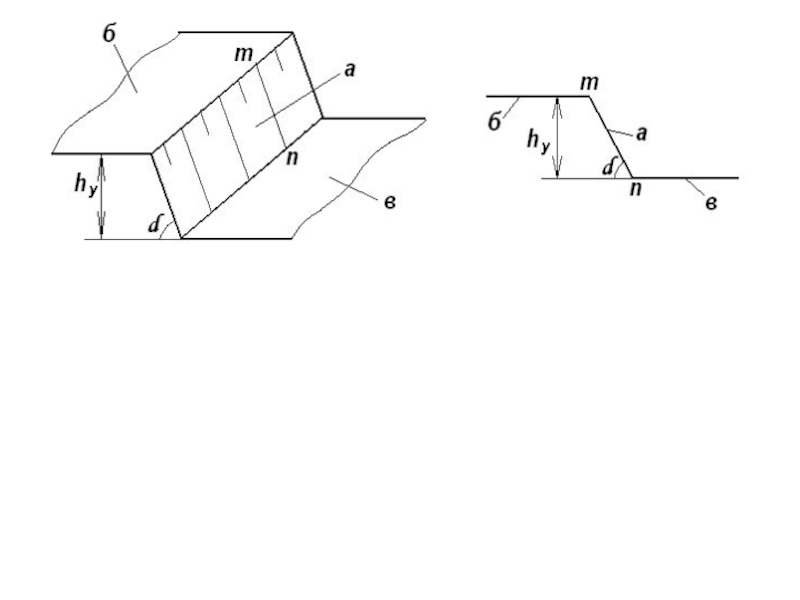 Откос уступа - наклонная поверхность, ограничивающая уступ со стороны выработанного пространства.Угол откоса - угол, образованный плоскостью уступа