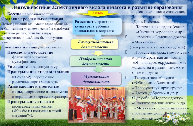 Толерантное общение («Обидчик -обиженный», «Посочувствуй друг другу», «Цветок доброты» и др.);