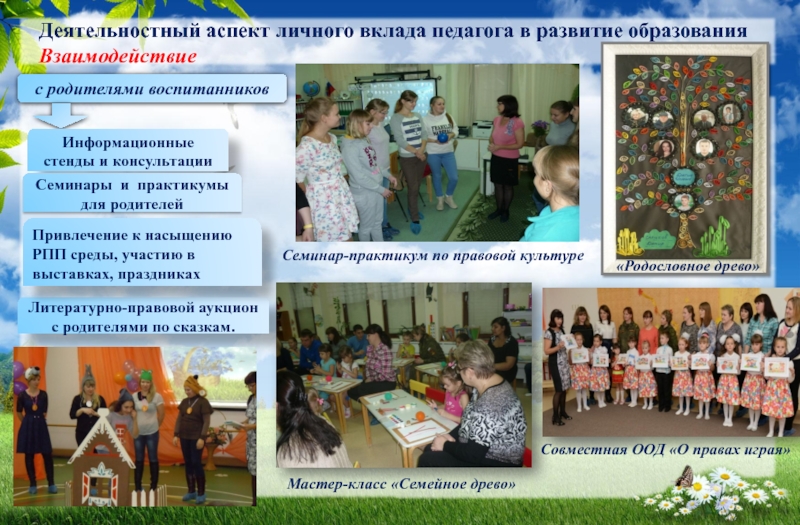 о своих правах, нормах правового поведения, навыков решать проблемные ситуации без использования силы, во взаимодействии с родителями воспитанников.