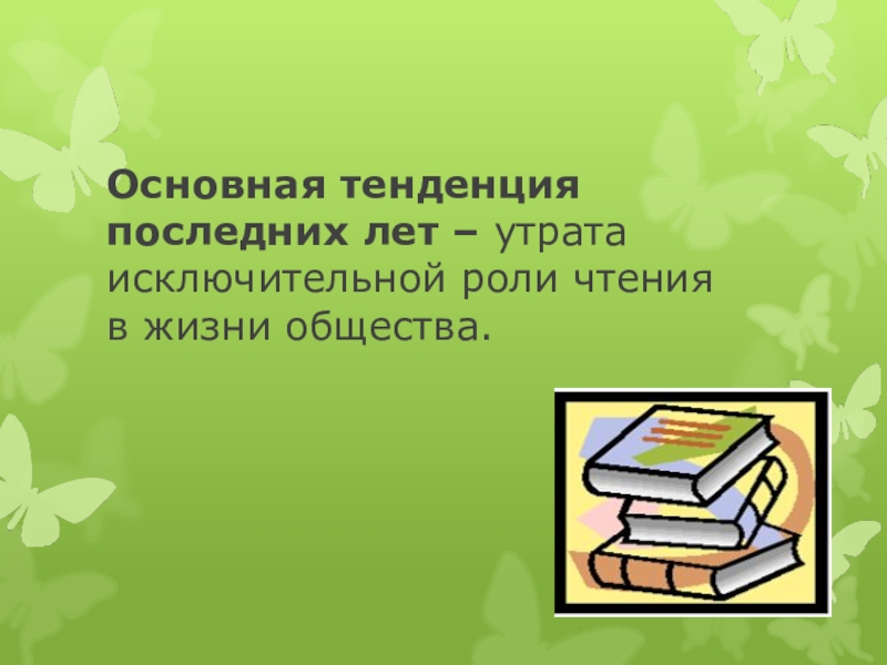 Слайд 3Основная тенденция последних лет – утрата исключительной роли чтения  в жизни общества.