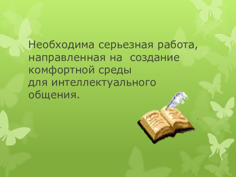 Слайд 5Необходима серьезная работа, направленная на  создание комфортной среды для интеллектуального общения.