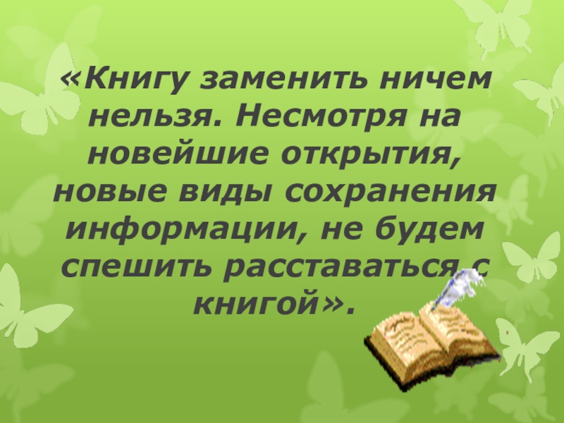 Слайд 37«Книгу заменить ничем нельзя. Несмотря на новейшие открытия, новые виды сохранения