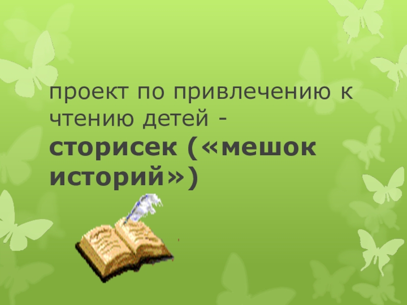 Слайд 20проект по привлечению к чтению детей - сторисек («мешок историй»)