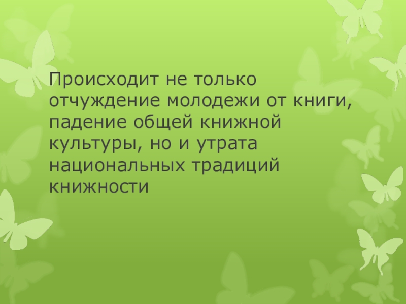 Слайд 4Происходит не только отчуждение молодежи от книги, падение общей книжной культуры, но и утрата национальных
