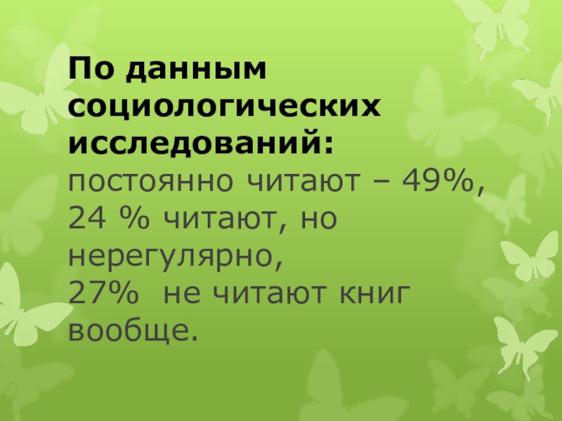 Слайд 8По данным социологических исследований: постоянно читают – 49%, 24 % читают,