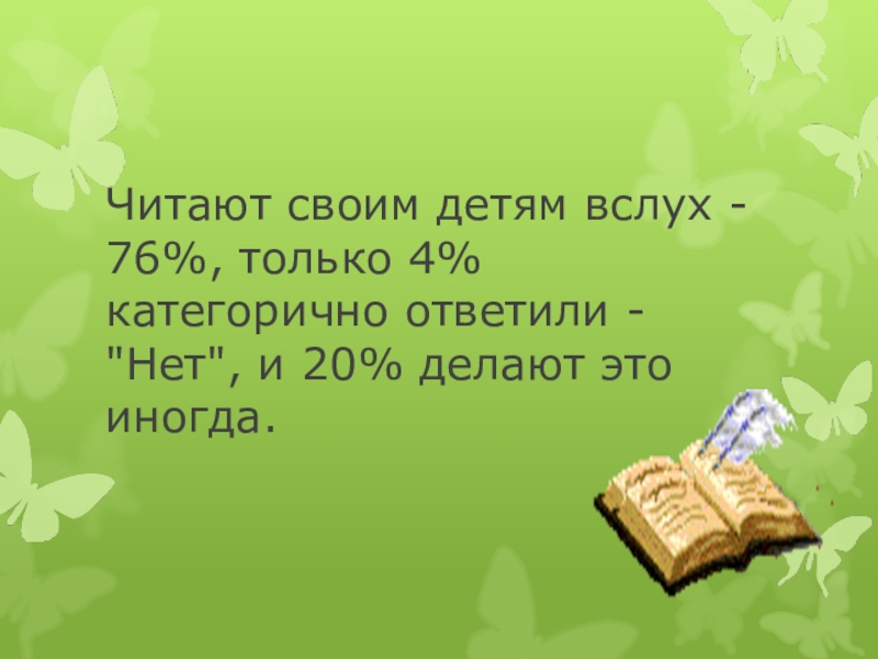 Слайд 14Читают своим детям вслух - 76%, только 4% категорично ответили -