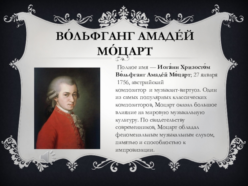 Слайд 8Во́льфганг Амадéй Мо́царт