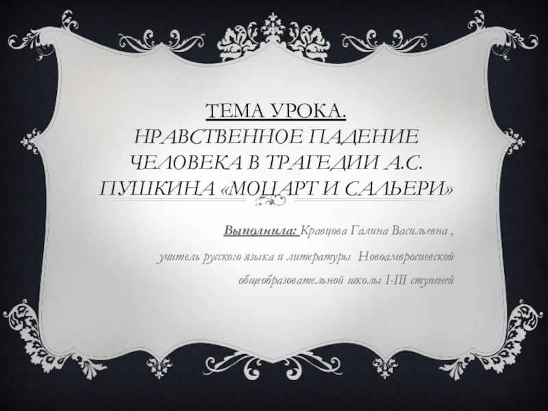 Нравственное падение человека в трагедии А.С. Пушкина "Моцарт и Сальери"