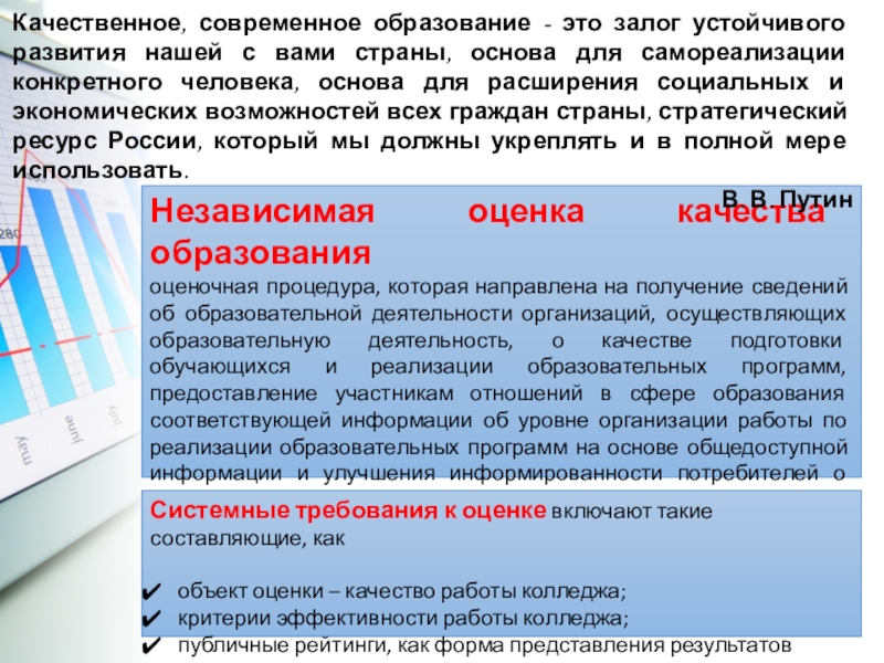 Качественное, современное образование - это залог устойчивого развития нашей с вами страны, основа для самореализации конкретного человека, основа для расширения социальных и экономических возможностей всех граждан страны, стратегический ресурс России, который мы должны укреплять и в полной мере использовать.