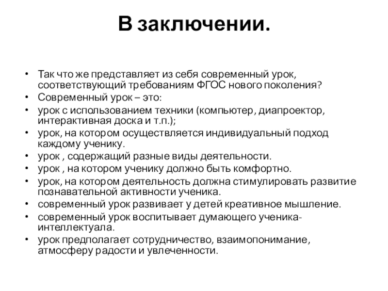 Так что же представляет из себя современный урок, соответствующий требованиям