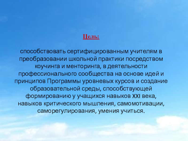способствовать сертифицированным учителям в преобразовании школьной практики посредством коучинга и менторинга,