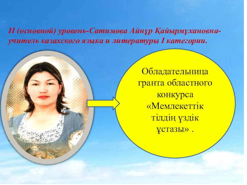 Слайд 7ІІ (основной) уровень – Танбаева Надежда Шүкірқызы-учитель казахского языка и литературы