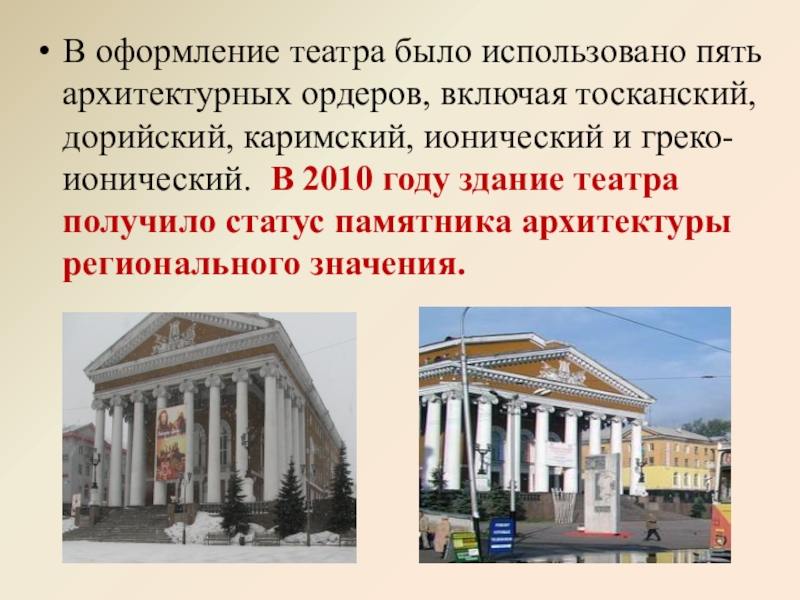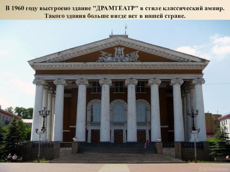 Слайд 8В 1960 году выстроено здание "ДРАМТЕАТР" в стиле классический ампир. Такого