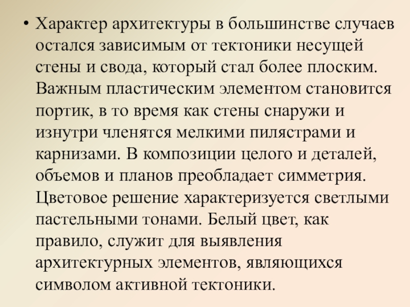 Слайд 9Характер архитектуры в большинстве случаев остался зависимым от тектоники несущей стены