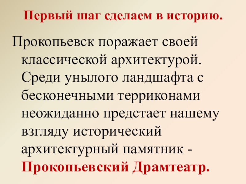 ландшафта с бесконечными терриконами неожиданно предстает нашему взгляду исторический архитектурный памятник - Прокопьевский Драмтеатр.
