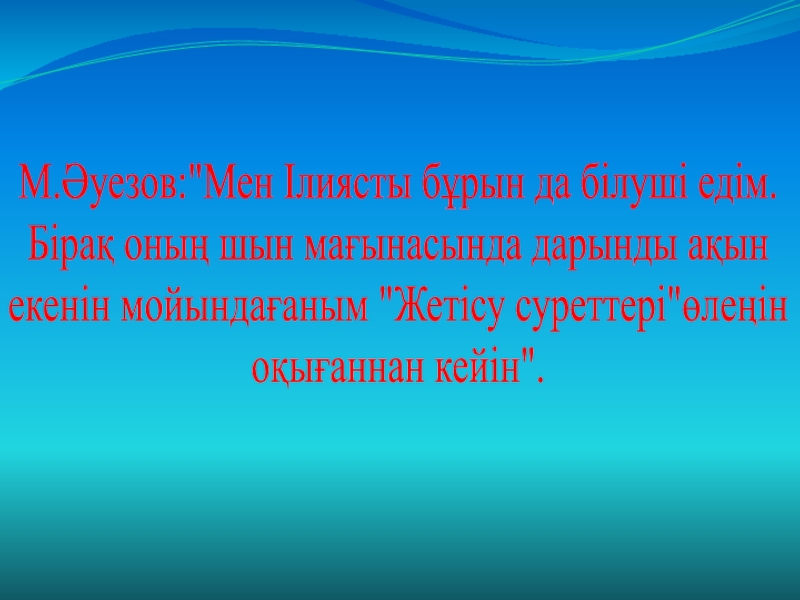Слайд 7М.Әуезов:"Мен Ілиясты бұрын да білуші едім.