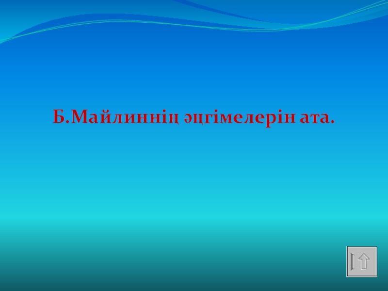 Слайд 15Б.Майлиннің әңгімелерін ата.